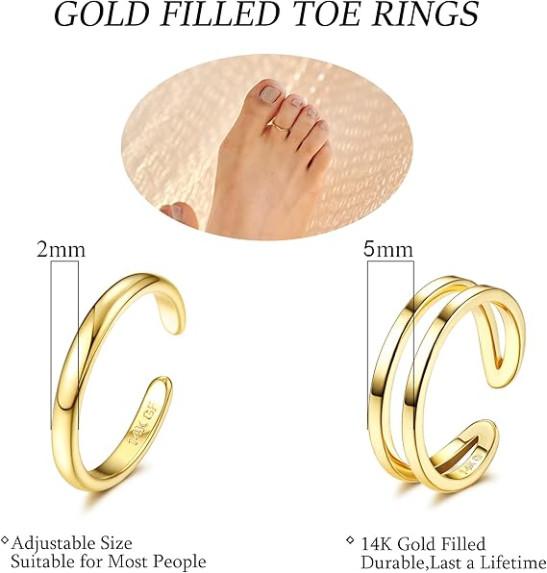 IRONBOX 14K Gold Filled Toe Rings for Women Simple Open Band Toe Ring Adjustable Toe Rings