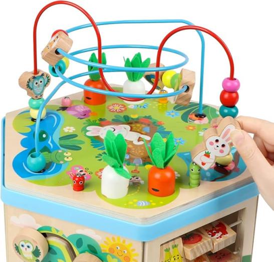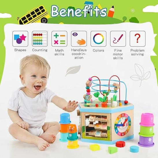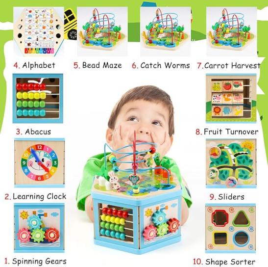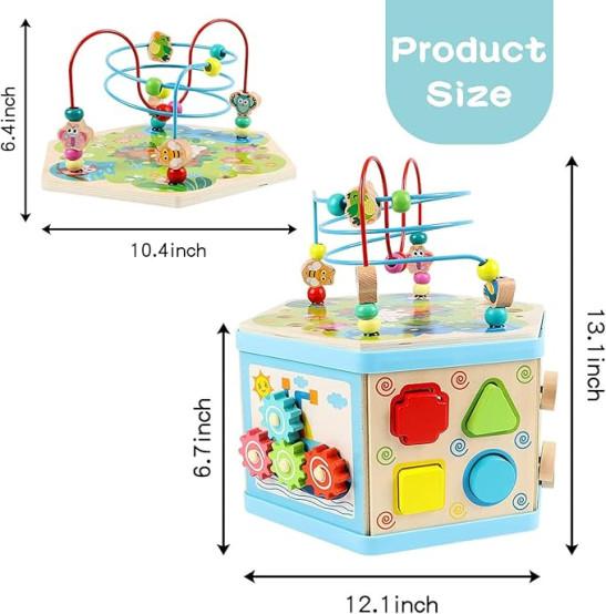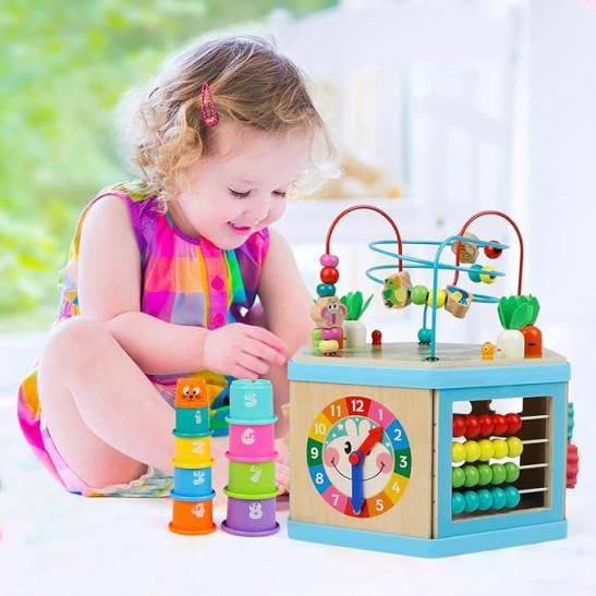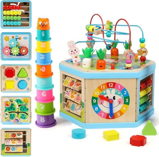 Jacootoys 7-in-1 Wooden Activity Cube for Kids