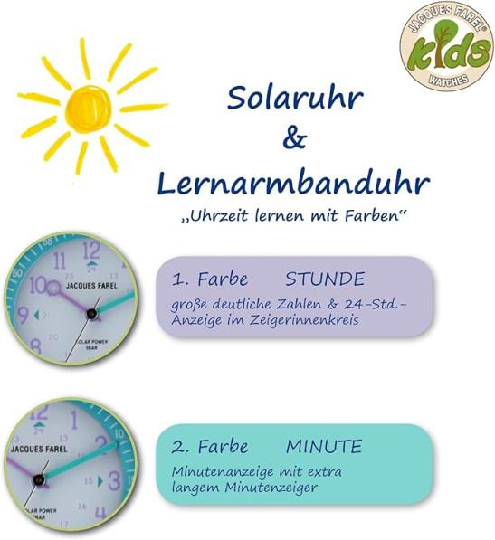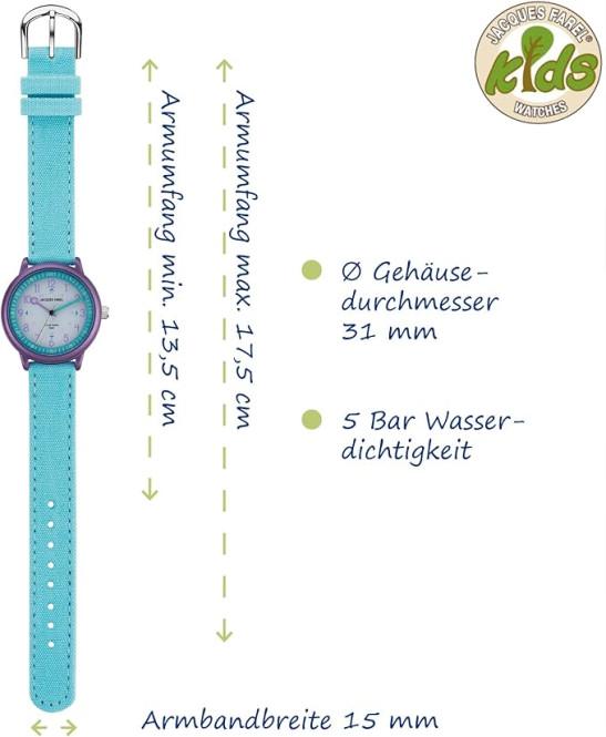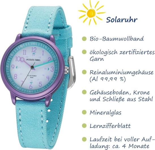 JACQUES FAREL ORSO 3075 Solar Watch Learning Watch Eco Children's Watch Girls Analogue Quartz with Textile Strap Made of Organic Cotton Ice Blue Sustainable, blue, Strap.
