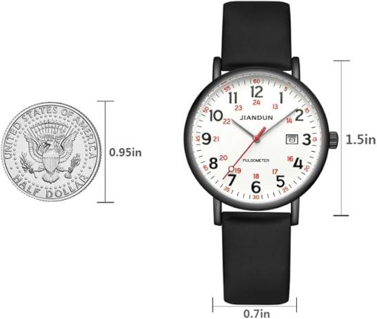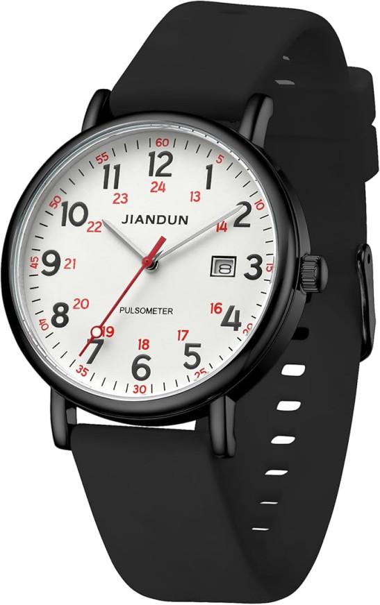 JIANDUN Waterproof Nurse Watch for Medical,Professionals,Students,Women Men, 24 Hour with Second Hand, Military Time Easy to Read Dial