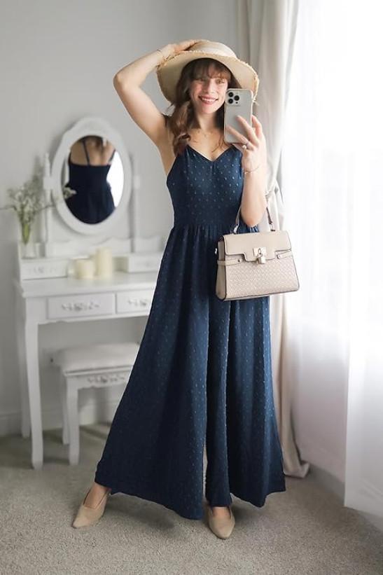 Jumpsuit for Women UK Playsuits Wide Leg Dressy Pants Overall Ladies Summer Casual Dungarees Romper with Pockets
