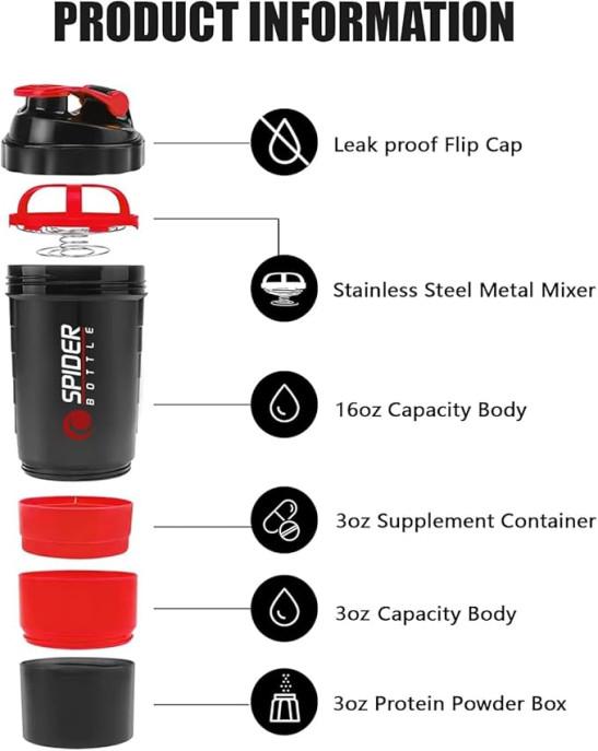 K-MART Protein Shaker Bottle 500ml with Extra Compartment | BPA-Free Protein Bottle Shaker for Protein Shakes | Leak Proof & Dishwasher Safe | Protein Shake Gym Bottles for Men & Women