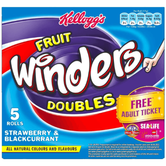Kelloggs Fruit Winders Rolls Strawberry & Blackcurrent, 5 x 17g