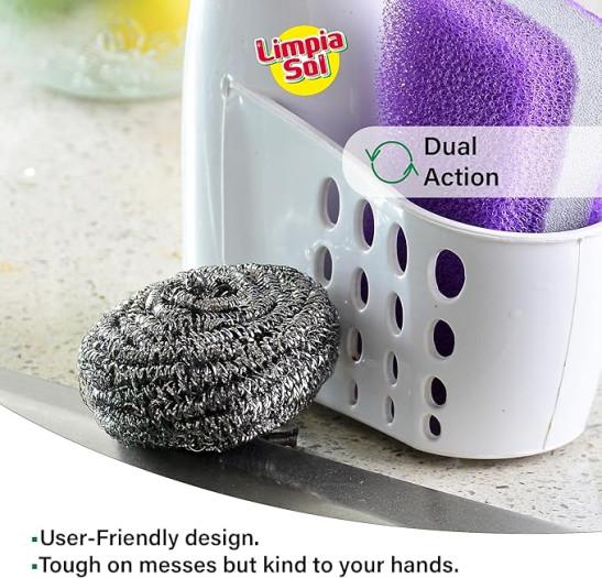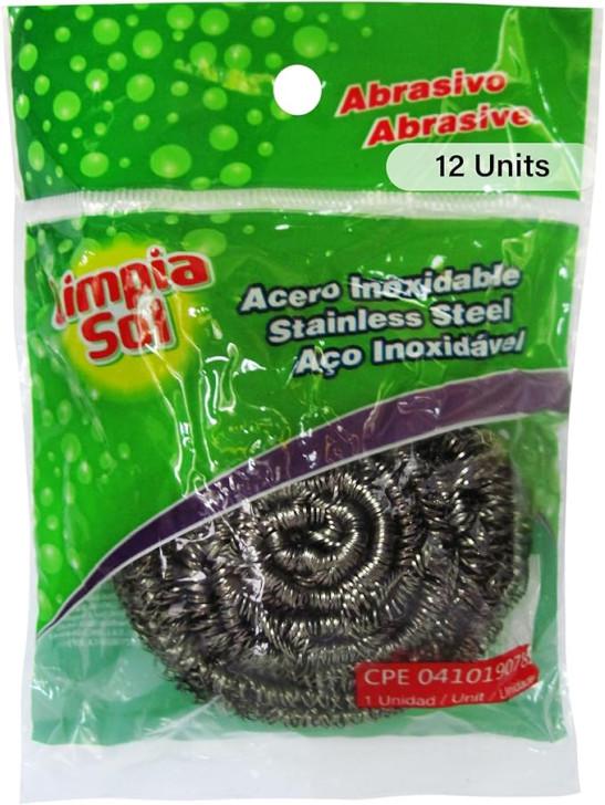 Limpia Sol | Pack 12 Stainless Steel Scrub Sponge | Apartment Essentials - Cleaning Supplies Sponges Kitchen - Steel Wool Sponge