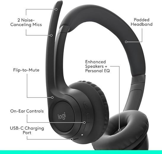Logitech Zone 300 Wireless Bluetooth Headset With Noise-Cancelling Microphone