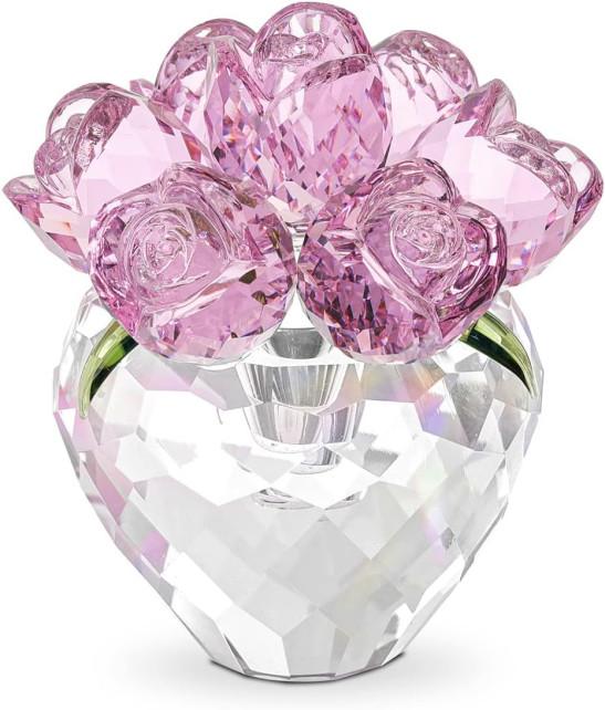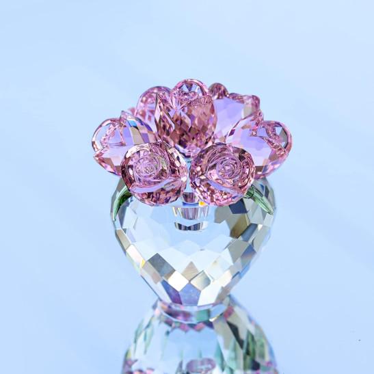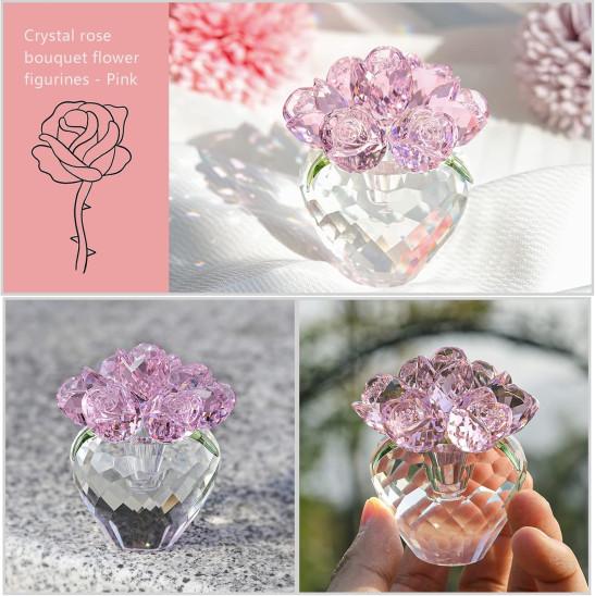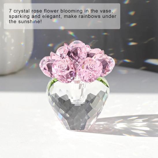 LONGWIN Crystal Rose Flower Figurines Glass Flower Spring Bouquet with Vase Home Decor Collectible Figurines, Romantic Crystal Gifts for Women on Valentines Day, Mothers Day