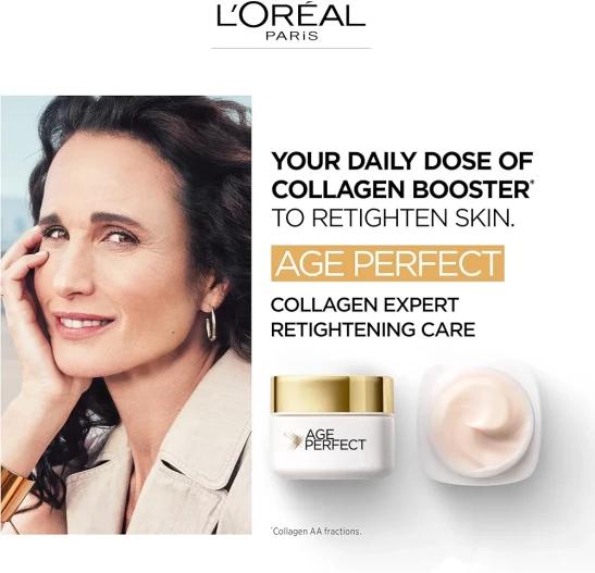 L’Oréal Paris Age Perfect Collagen Expert Retightening Day Cream 50+, Firmer, Supple, Moisturised and Hydrated Skin, Collagen AA Fractions, 50ml
