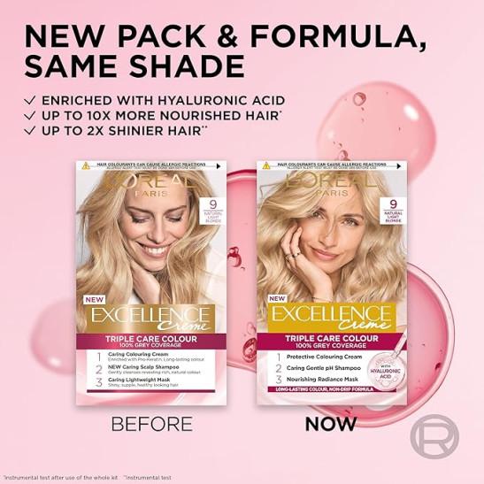 L'Oréal Paris Excellence Crème Permanent Hair Dye, Colour: 9 Natural Light Blonde