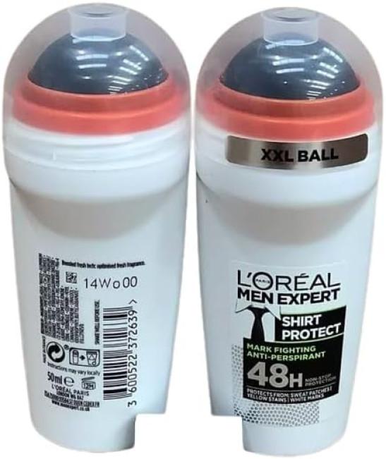 L'Oréal Paris Men Expert 48H Shirt Protect Anti-Perspirant Roll On Deodorant for Men, 50ml Pack of 6