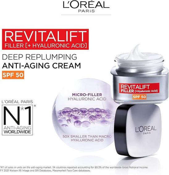 L’Oréal Paris Revitalift Filler Deep Replumping Anti-Ageing SPF50 Cream, 50ml