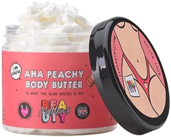 Mallows Beauty AHA Peachy Shea Body Butter, with Essential Oils, Vitamin A,Vitamin E, and Shea Butter,