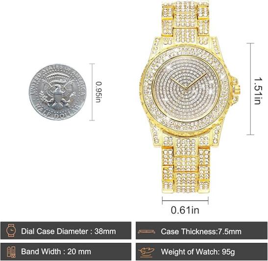ManChDa Women's Watch – Iced Bling Bling Fashion Watches for Women Jewellery Crystal Diamond Ladies Watches Analog Quartz Charm Stainless Steel Wrist Watch