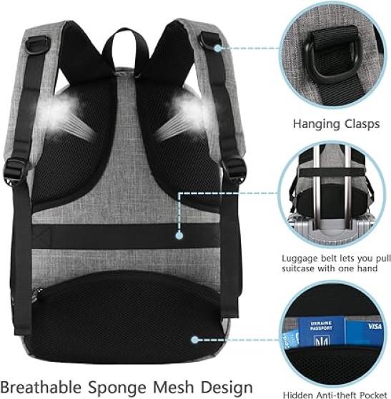 MATEIN Travel Laptop Backpack, Work Bag Lightweight Laptop Bag with USB Charging Port, Anti Theft Business Backpack, Water Resistant School Rucksack Gift for Men and Women, Fits 15.6 Inch Laptop, Grey
