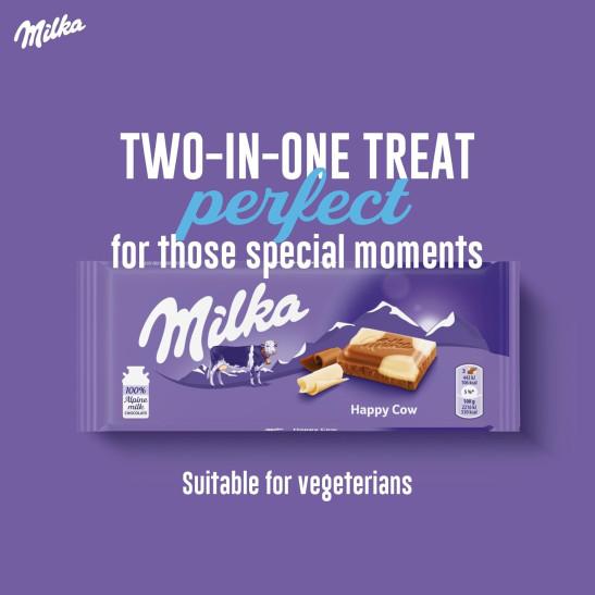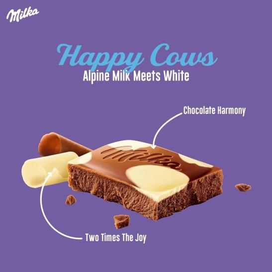 Milka Happy Cows Alpine Milk and White Chocolate Bar, Chocolate Harmony, 90 g