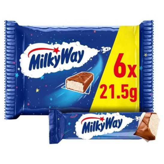 Milky Way Chocolate Bars, Nougat & Milk Chocolate Multipack, 6 x 21.5g