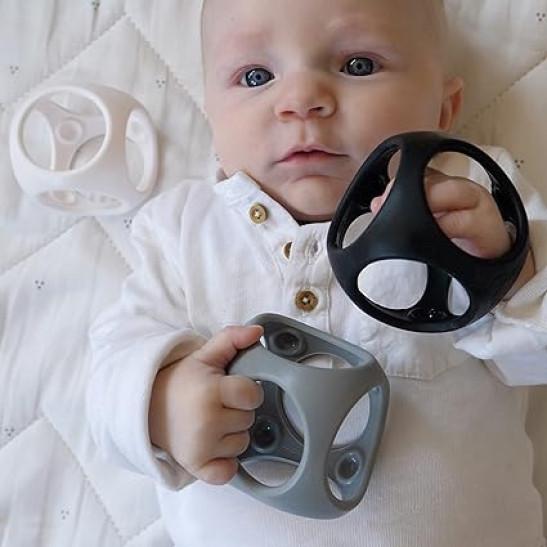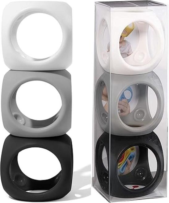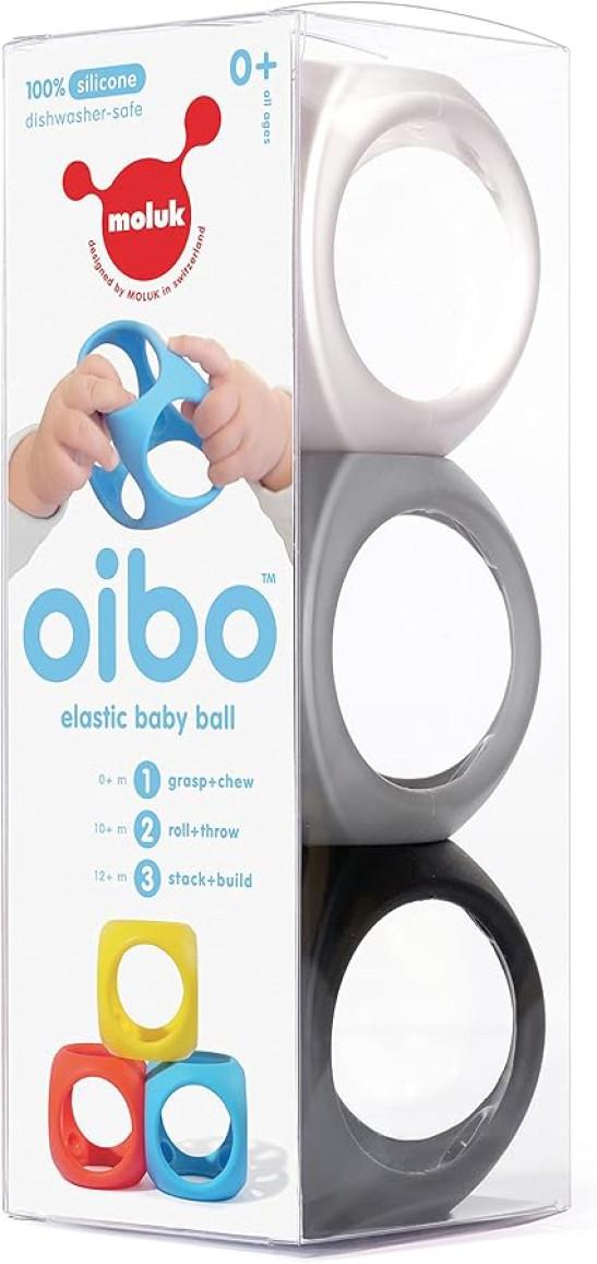 MOLUK 43421 Oibo Gripping and Teething, Play Ball, Stacking Game, Baby Toy from 0+ Months, 3 Pieces, Monochrome Colours, White, Dark Grey, Black