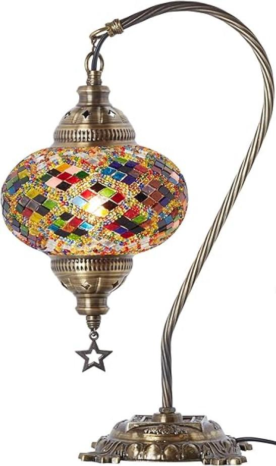 Moroccan Mosaic Table Lamp with Big Size Globe, Gooseneck Boho Exotic Colorful Mosaic