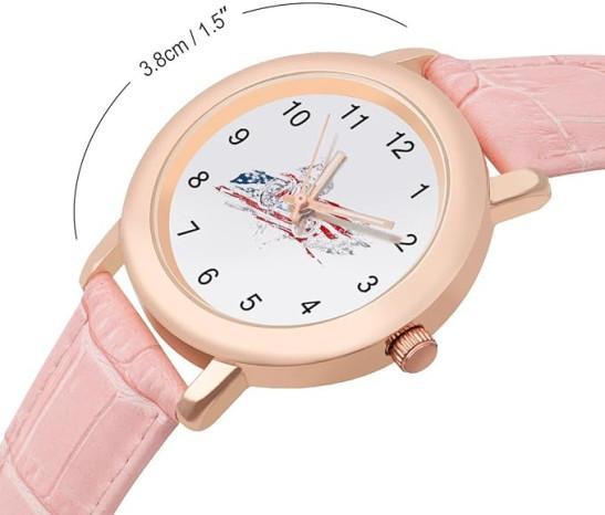 Motocross Dirt Bike USA Flag Fashion Watch For Women Easy Reader Novelty Round Watches Slim Quartz Casual Dress Wrist Watch Pink