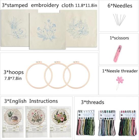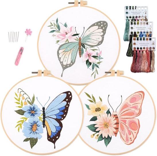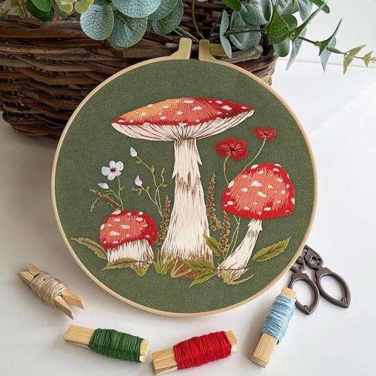 Myfelicity 3 Sets Mushroom Embroidery kit, Adult Beginner DIY Needle kit, Art Craft Handy Sewing Set