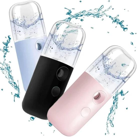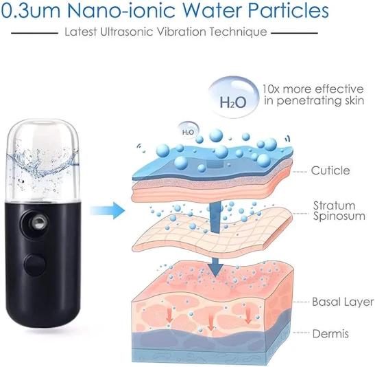 Nano Facial Mister, Facial Mister Mini Steamer USB Rechargeable Mist Sprayer for Face Daily Makeup Skin Care Black 30ml