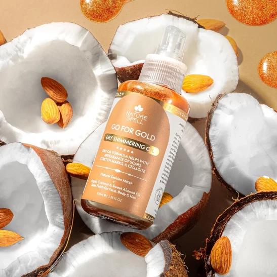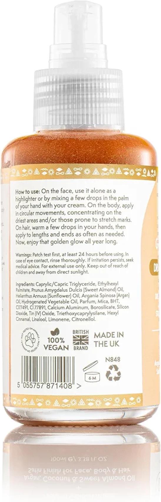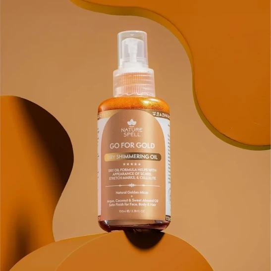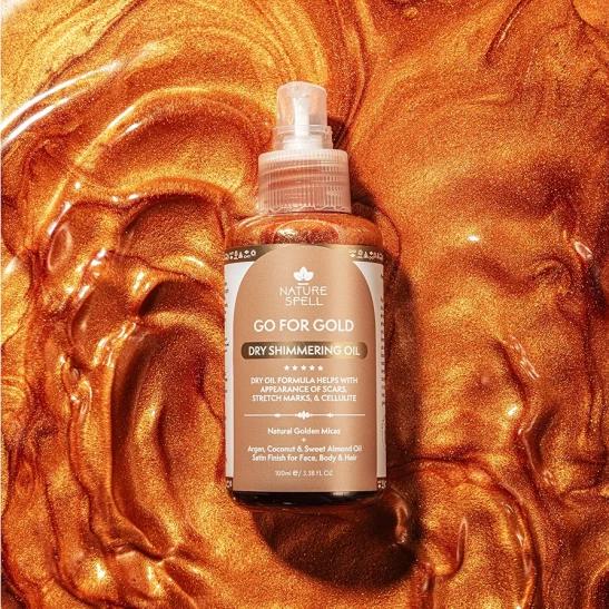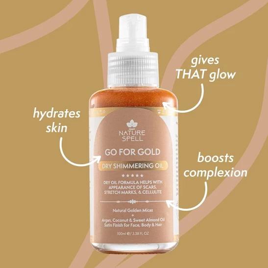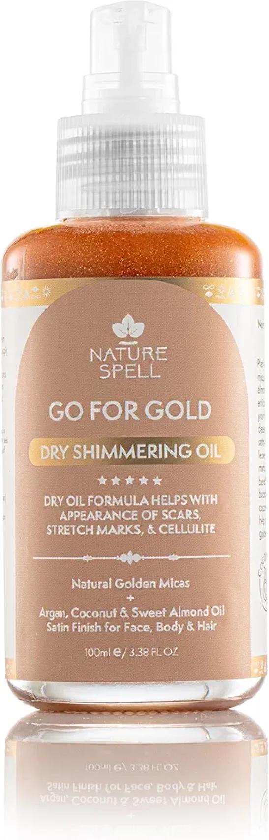 Nature Spell Go For Gold Dry Shimmering Oil For Face, Body & Hair 100 ml, Nourishing & Glowy Body Shimmer, Made In The UK