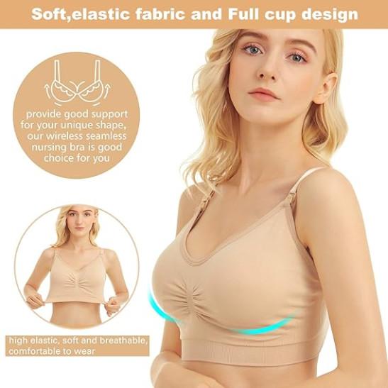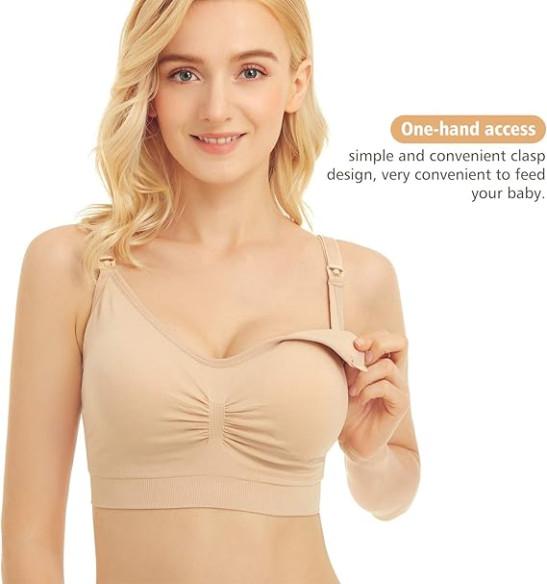 neppein Maternity Nursing Bra, Seamless Pregnancy Bra Breastfeeding Bra Sleep Bralette with Removable Spill Prevention Pads and Bra Extenders