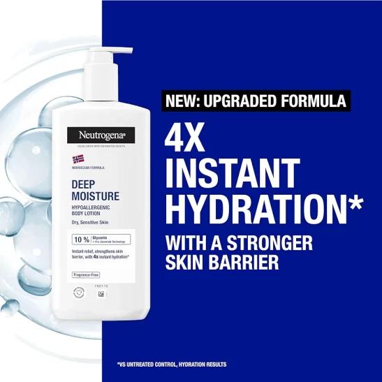 Neutrogena Norwegian Formula Deep Moisture Hypoallergenic Body Lotion (1x 400ml), Fragrance-Free Hypoallergenic Body Moisturiser for Sensitive and Dry Skin