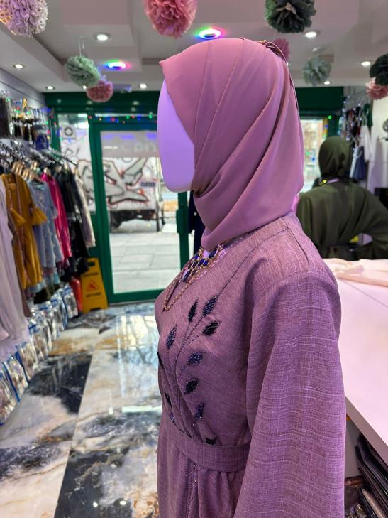 New Arrival Taupe Elegance Embroidered Abaya Beige(54) Gown with Delicate Leaf Embroidery Stylish Belt & Matching Scarf for All Seasons