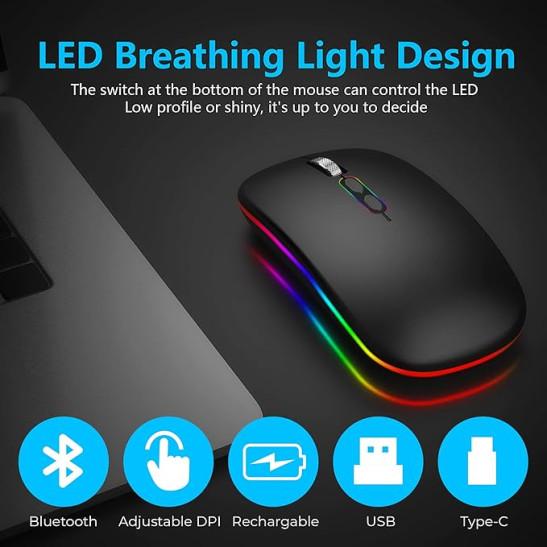 New Wireless Mouse With 2.4G & Bluetooth for Laptop, Smart Desktop Button & 800 to 1600 DPI, RGB Ergonomic Design Compatible With Macbook iPad Computer Notebook