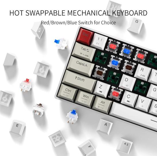 NEWMEN GM610 Wireless Mechanical Keyboard,60% USB C Wired/Bluetooth/2.4Ghz RGB Backlit Compact Hot Swappable Keyboard,White Anti-Ghosting PC Mac Windows Android Gaming Keyboard(Red Switches)