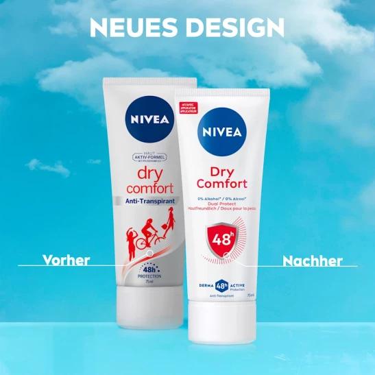 Nivea Dry Comfort Deodorant Cream for Women Antiperspirant Protection, Tube, 75 ml