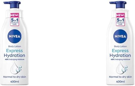 NIVEA Express Hydration Body Lotion (400ml), Fast Absorbing NIVEA Moisturiser for Dry Skin Made with Deep Moisture Serum and Sea Minerals, Smooth Skin NIVEA Body Lotion (Pack of 2)