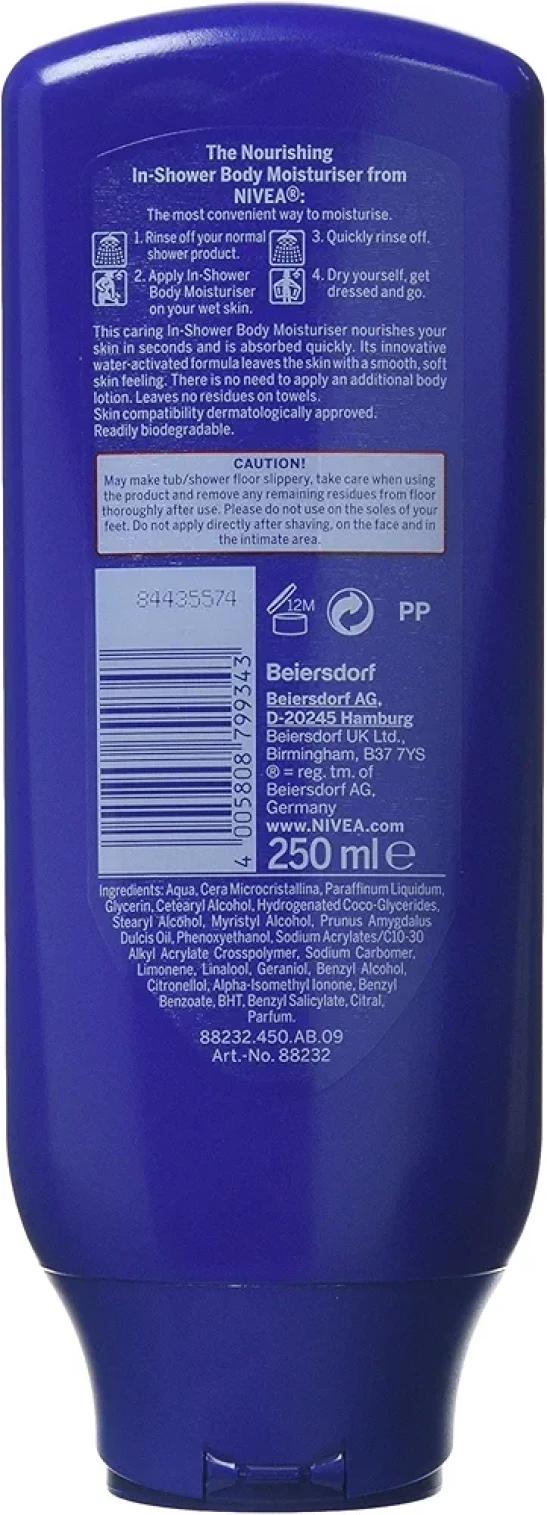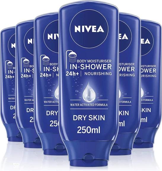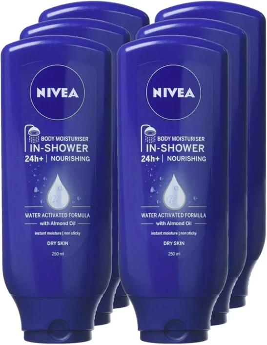 NIVEA In-Shower Body Moisturiser Nourishing for Dry Skin Pack of 6 (6 x 250ml)