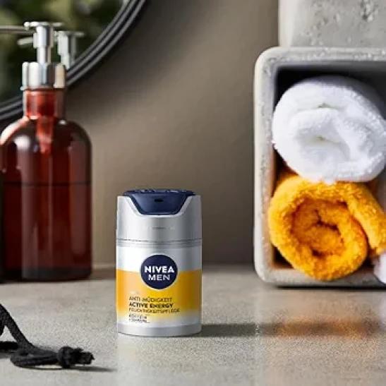 NIVEA MEN Active Energy Face Care Cream (50 ml), Revitalising Face Cream for Men, Fast Absorbing Moisturiser Against Signs of Fatigue