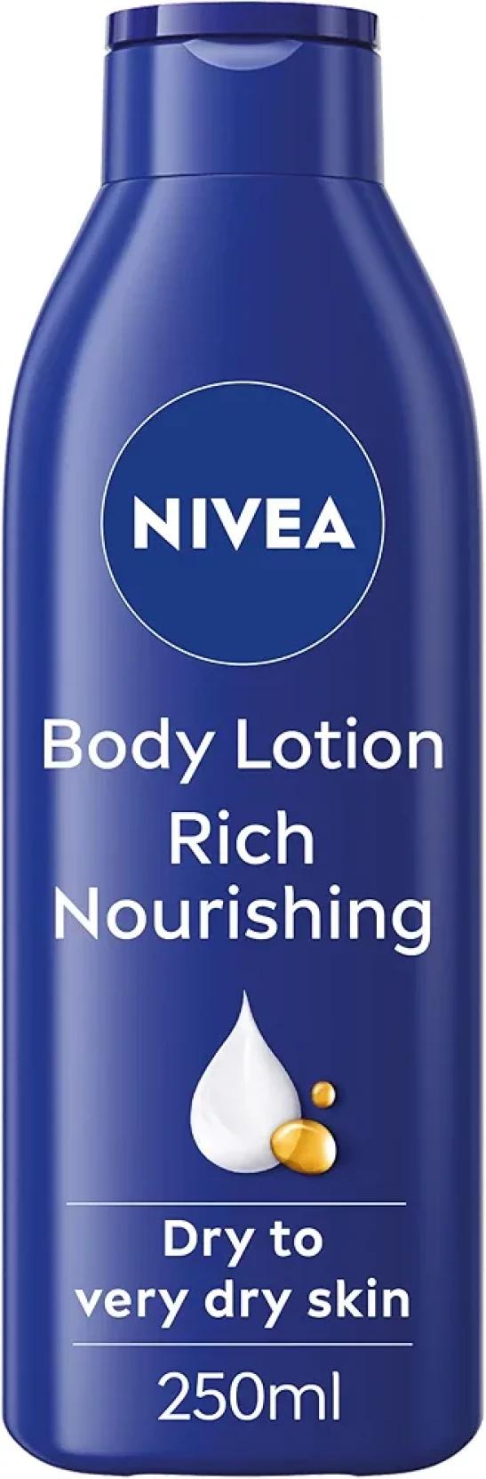 NIVEA Rich Nourishing Body Lotion (250ml), Rich 72H Hydration NIVEA Moisturiser for Dry Skin Made with Deep Moisture Serum and Almond Oil, Intensive Hydration NIVEA Body Lotion