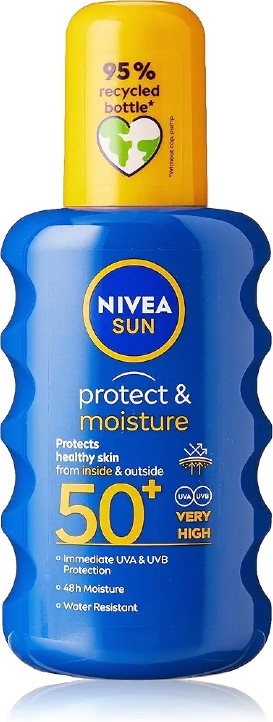 NIVEA SUN Protect & Moisture Sun Spray SPF 50+ (200ml) Moisturising Suncream Spray with SPF 50+ Advanced Sunscreen Providing Immediate Effective UVA + UVB Protection