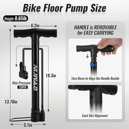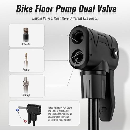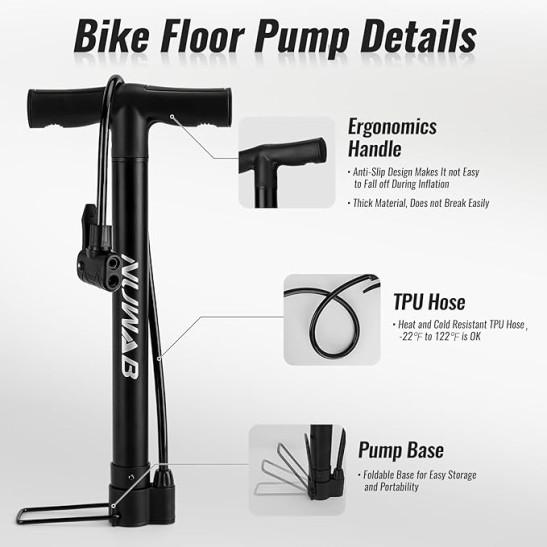NUWAB Bike Floor Pump, Cycling Floor Pump with Presta & Schrader Valves