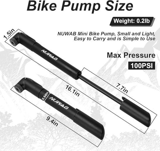 NUWAB Mini Bike Pump, 9.4" Hand Bicycle Pump