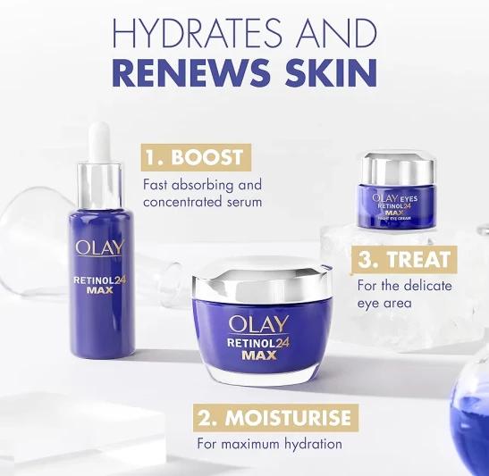 Olay Regenerist Retinol24 Night Face Cream Moisturiser With Retinol and Vitamin B3 50 ml, Fragrance Free