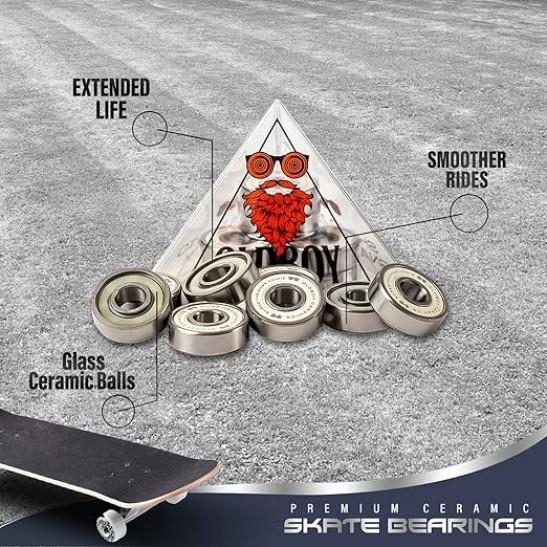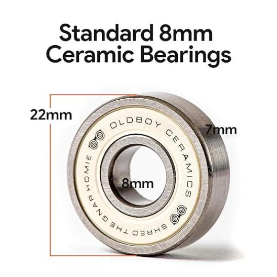 Oldboy Ceramic Skateboard Bearings, Set of 8 Bearings for Skateboards