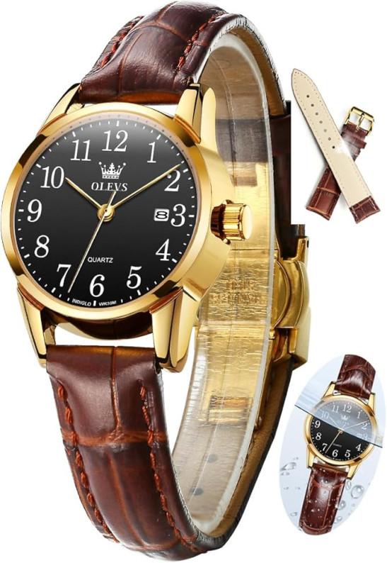OLEVS Blue Watches for Women Women's Easy Reader 28mm Watch, Stainless Steel Analog Silver Blue Dial with Day Date, Dress Classic Luxury Women's Wrist Watches with Arabic Numerals, Small Female Watch