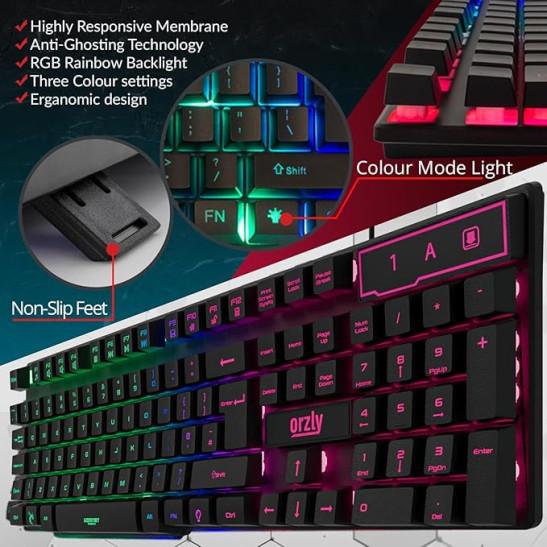 Orzly Gaming Keyboard RGB USB Wired Rainbow Keyboard Designed for PC Gamers, PS4, PS5, Laptop, Xbox, Nintendo Switch, RX250-K Hornet Edition (Black)