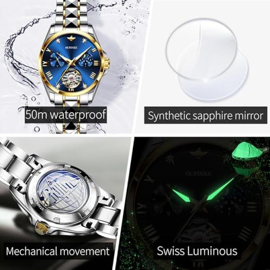 OUPINKE Watch for Women Automatic Luxury Diamond Skeleton Self Winding Mechanical Elegant Dress Ladies Wrist Watches Sapphire Crystal Waterproof Luminous
