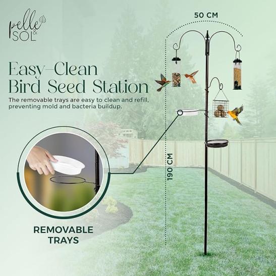 Pelle & Sol Bird Feeder with 3 Bird Feeders & 2 Dishes, Bird Feeders Hanging Station, Bird Feeder Pole, Bird Feeding Station, Metal Bird Feeder Stand, Bird Feeders for Small Birds Garden Decorations