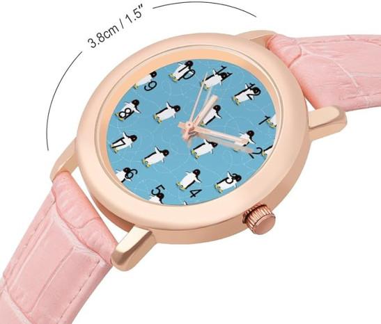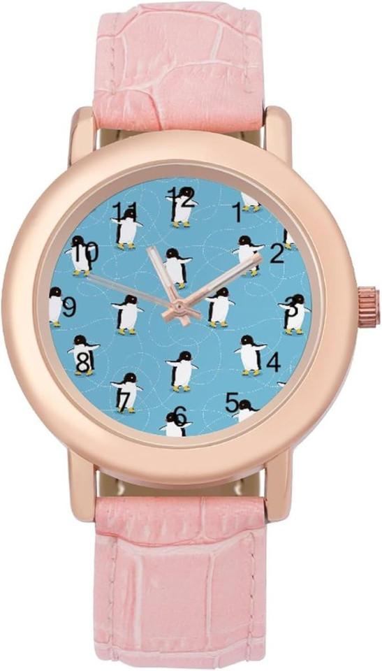 Penguins on Ice Women's Watch PU Strap Wrist Watch Quartz Pink Valentine's Day Gift