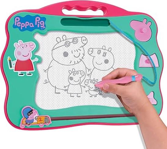 Peppa Pig Travel Magnetic Scribbler pad with pen and 3 stamps, draw and erase with no mess, Mint Green/Pink, 23.5 x 2.5 x 18 centimeters