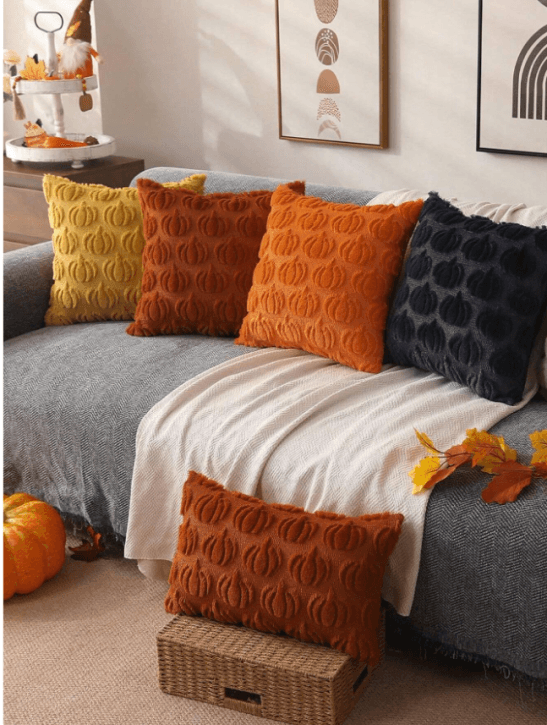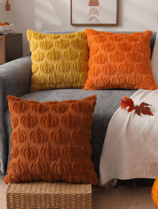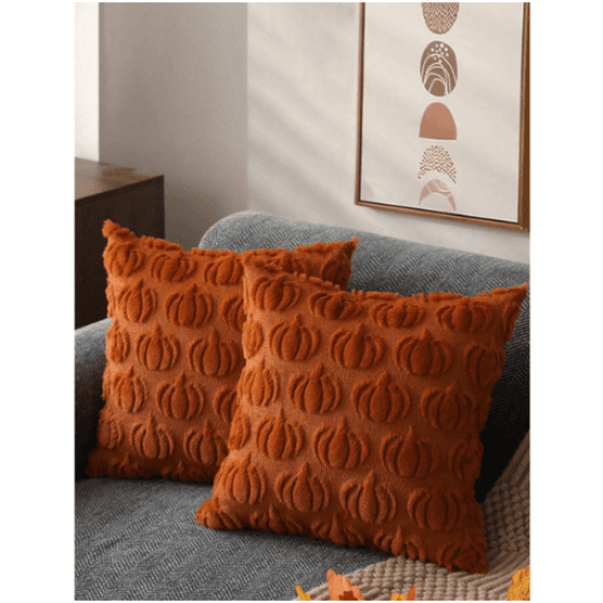 Pillow Cover 18x18 Fall Decorations Autumn Rust Pumpkin Throw Pillow Cases Soft Plush Fluffy Wool Couch Cushion Case For Chair Sofa Bedroom Living Room Home Decor