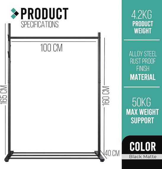 Portable Clothes Rail, Clothes Rack With Storage Shelf, 4 Hooks, Heavy Duty Clothes Rail