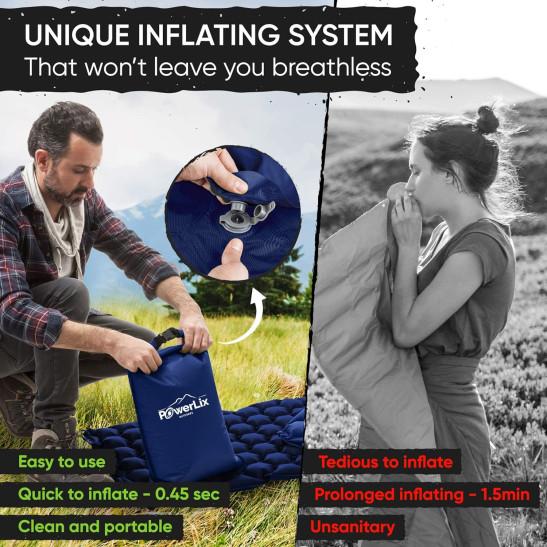 POWERLIX Camping Mat Inflatable Ultralight Sleeping Mat - Compact & Lightweight Camping Mattress for Backpacking, Hiking,Outdoor - Airpad,Inflating Bag, Carry Bag, Repair Kit, 74.8 x 22.8 inches