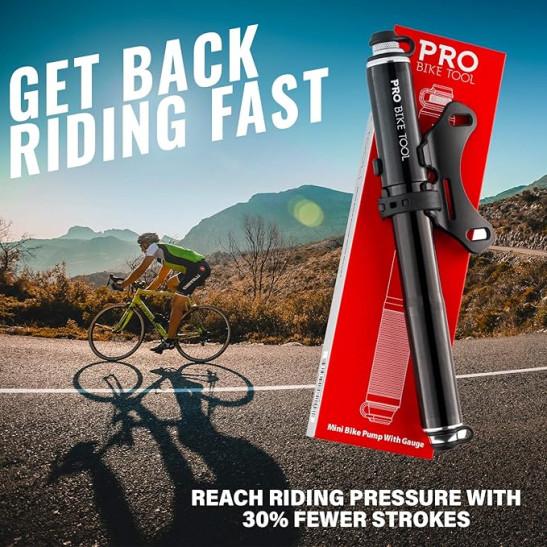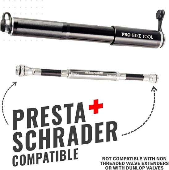 Pro-Bike Tool Mini Bike Pump with Gauge - Fits Presta & Schrader